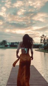 Evidenciando um estilo fashion clássico e elegante, criamos a calça pantalona Garzón com modelagem ampla e que evidencia um estilo único e atemporal. A Peça possui cintura alta, bolsos faca laterais, fechamento lateral por zíper semi-invisível e acompanha o cinto com argola de madeira.